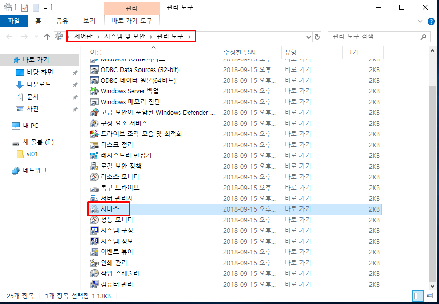 제어판 > 시스템 및 보안 > 관리도구 > 서비스에 들어간다.