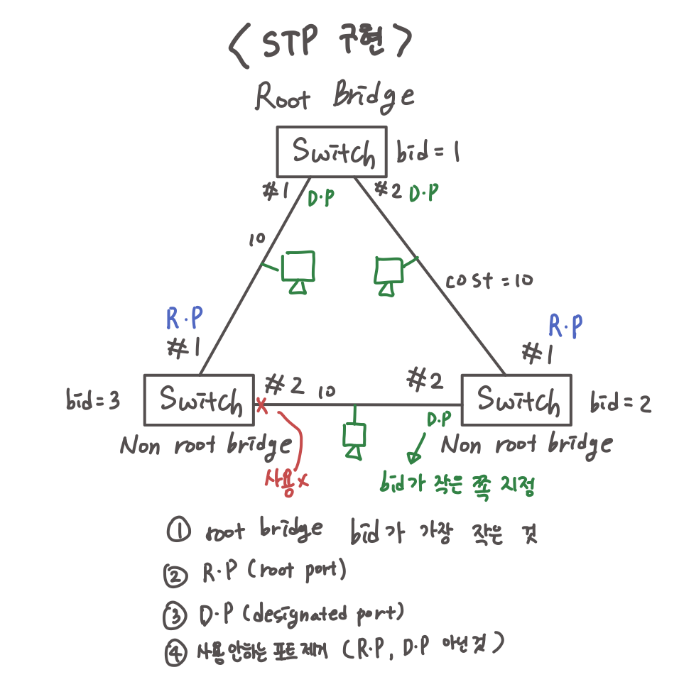 - 나머지 모든 스위치는 non root bridge가 된다.