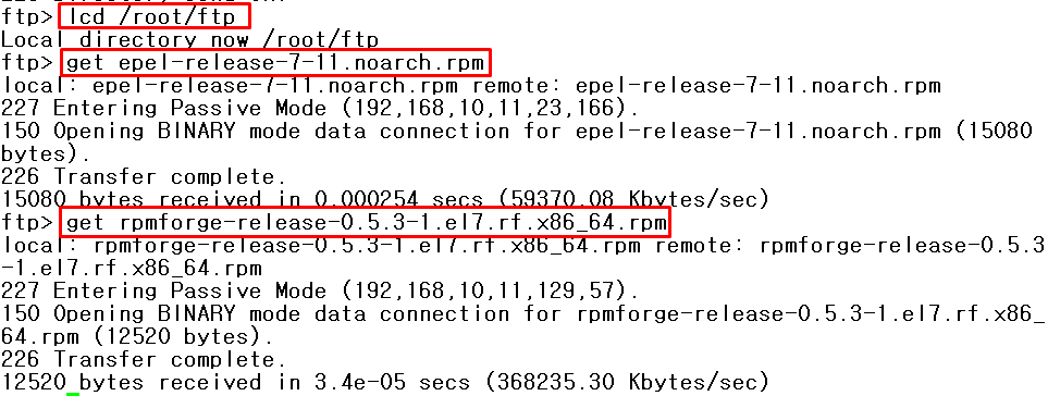 ftp 프로그램이 없을 경우 다음 명령어를 입력해 [ yum install ftp ] 설치 후 접속한다.