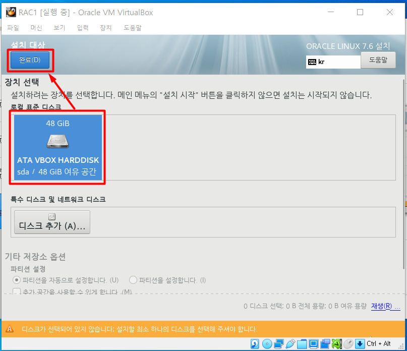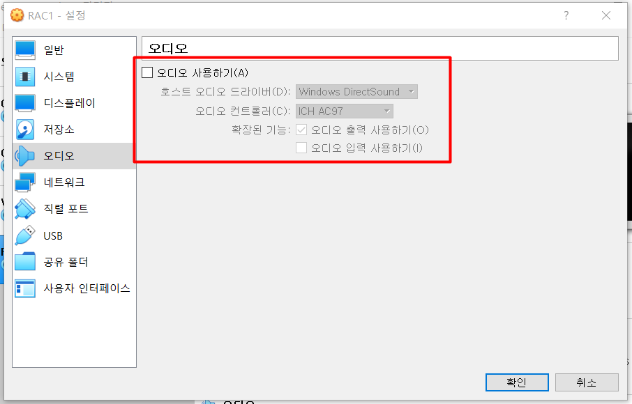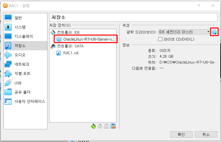 | RAC1.vdi | 48GB | RAC1 스토리지 영역 |