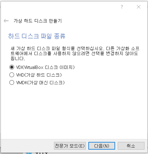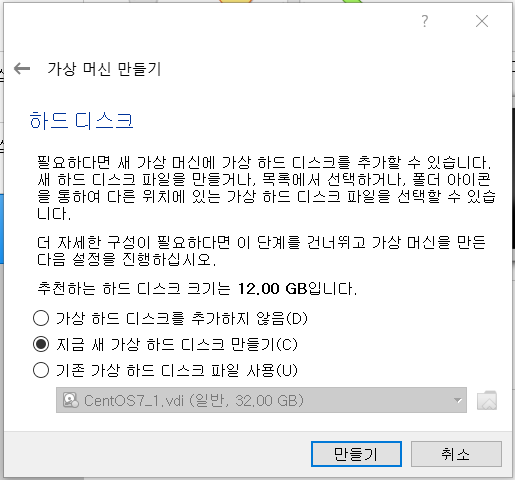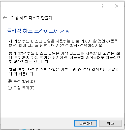 동적 할당으로 하드디스크 생성