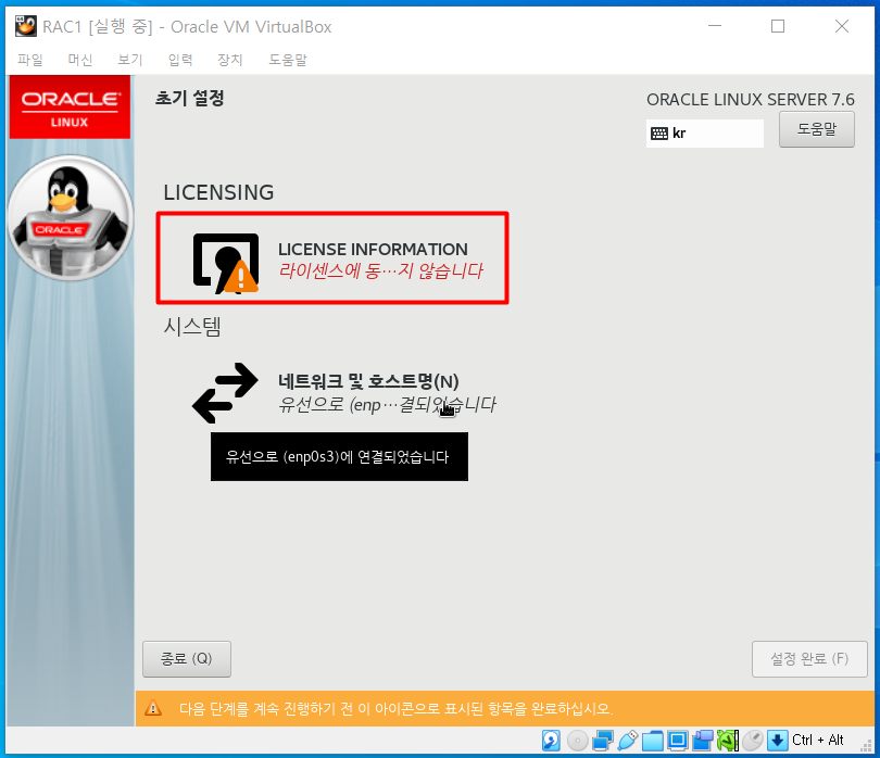 재부팅 후 라이센스 동의