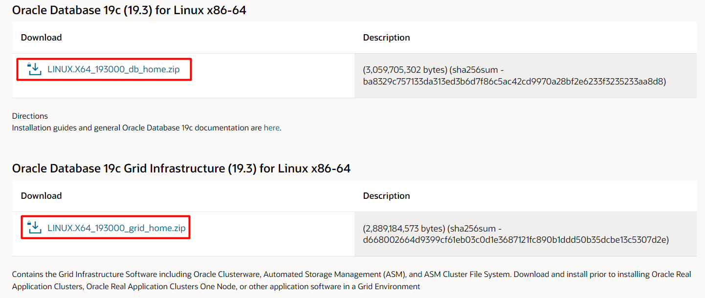 Oracle Grid, Oracle Database 다운로드 링크