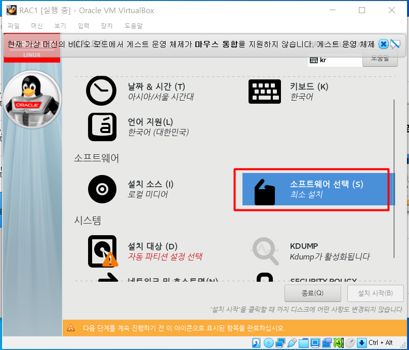 시스템 설치 대상 선택