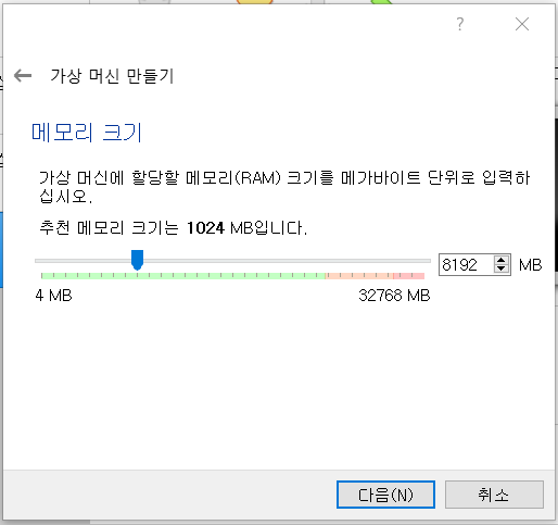 8GB로 설정한다. (Grid 최소 설치 메모리)