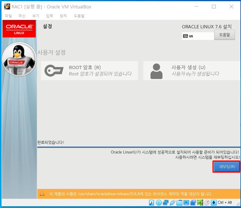 Oracle Linux 설치 완료