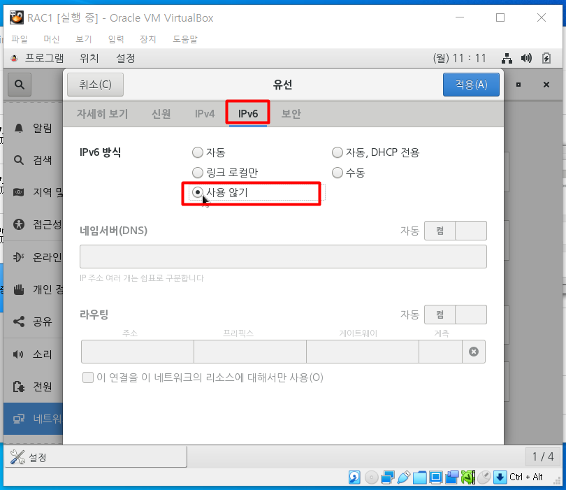 IPv6는 무시로 설정