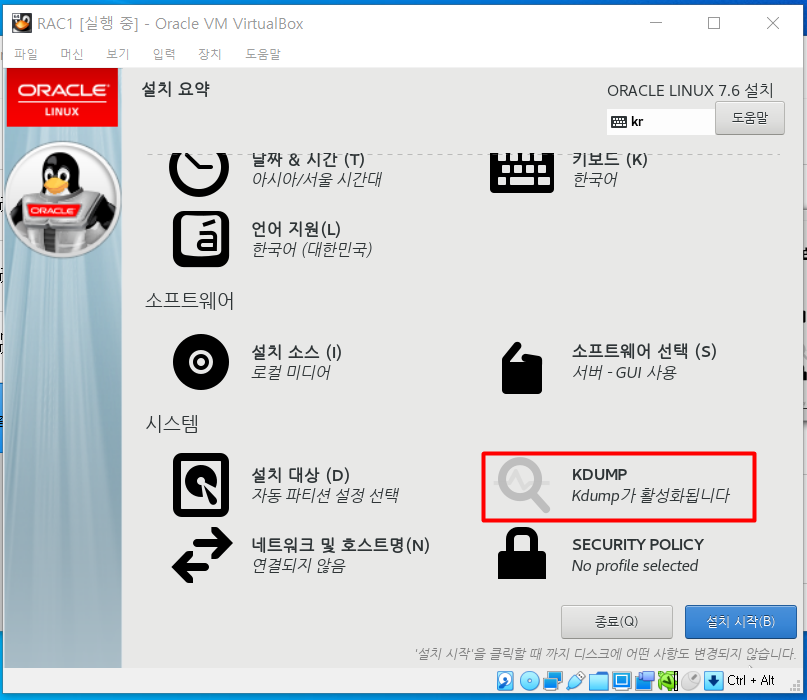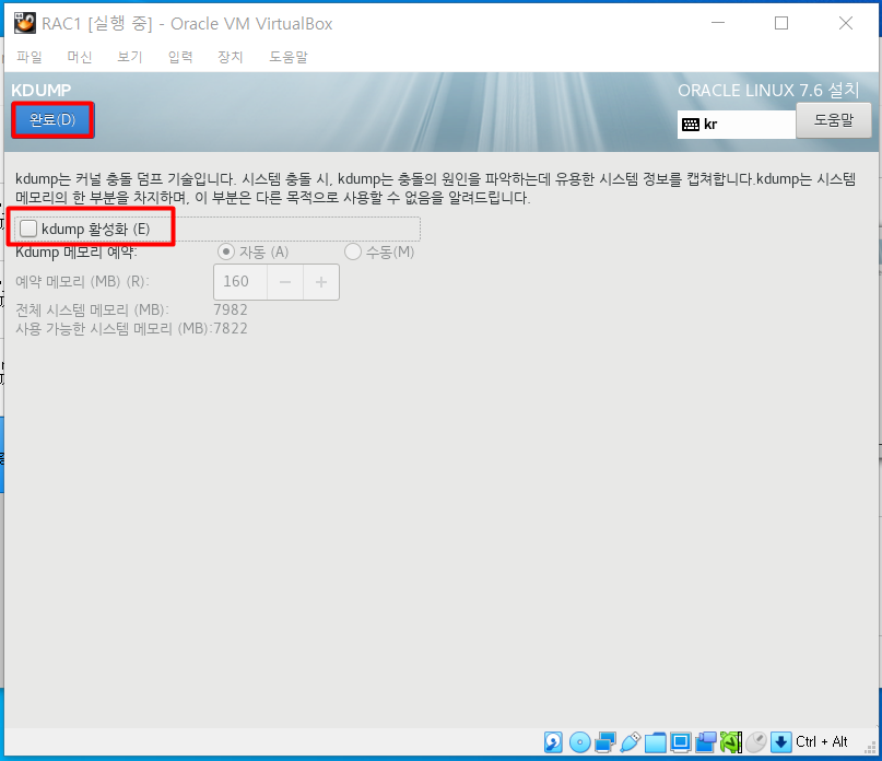 KDUMP 선택