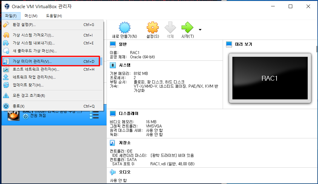 | rac1.vdi | 48GB | RAC1 스토리지 영역 |