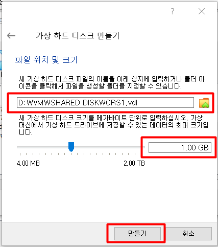 공유 스토리지 가상 디스크 생성