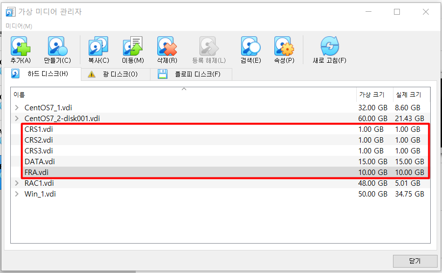 | rac2.vdi | 48GB | RAC2 스토리지 영역 |