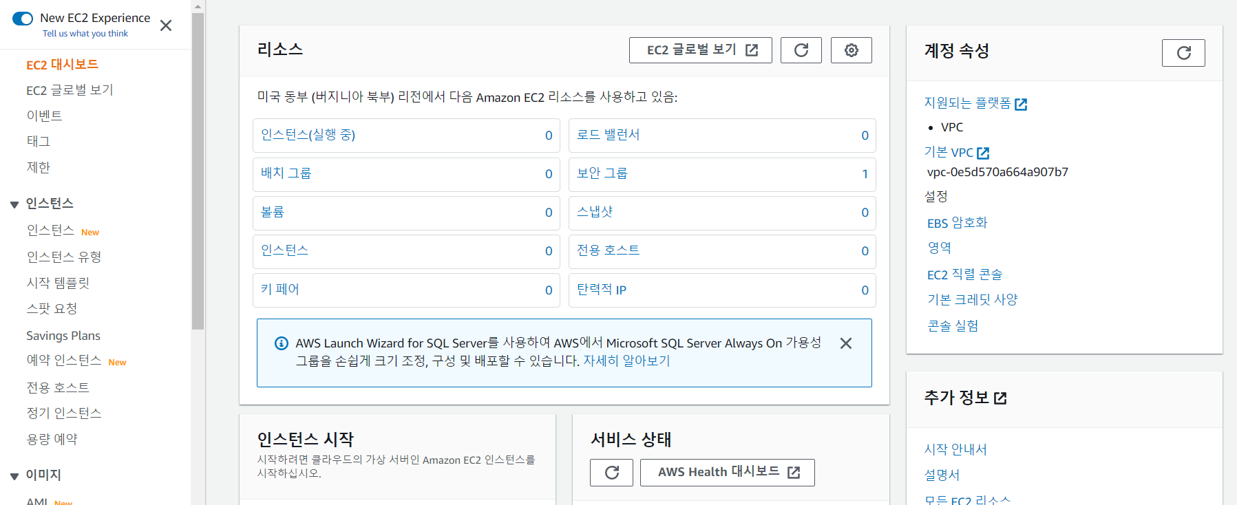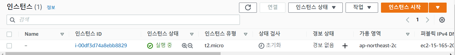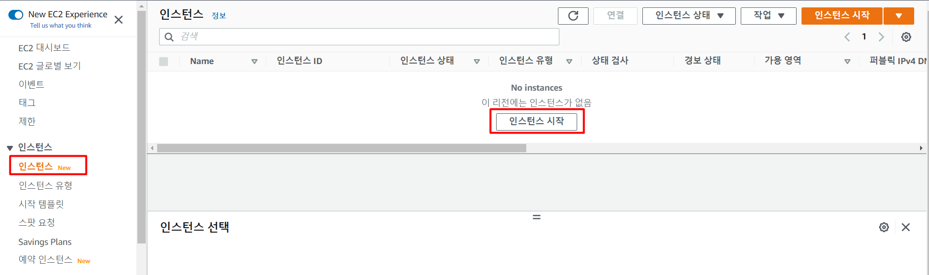 현재 실행 중인 인스턴스가 하나도 없다는 것을 확인할 수 있다.