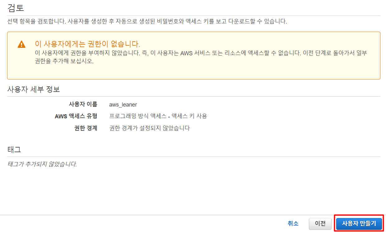 태그 및 보안그룹 구성도 default로 설정 후 검토 및 시작을 선택한다. 그 후 시작하기를 선택한다.
