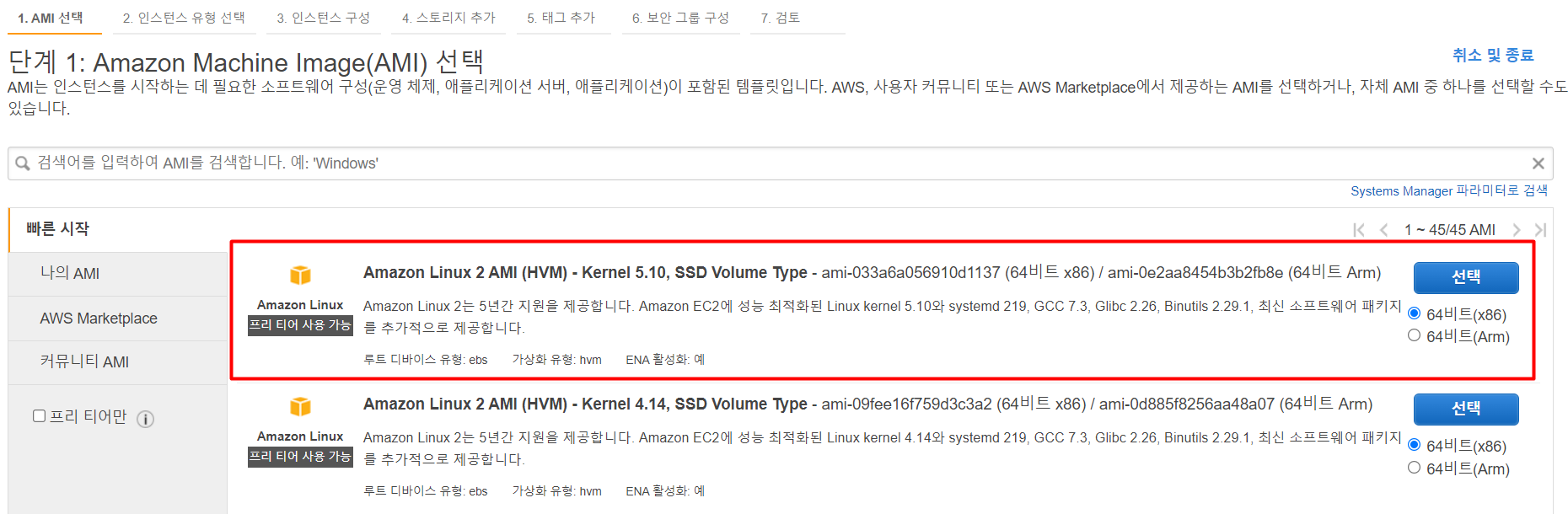 인스턴스 유형은 프리티어를 지원하는 유형을 선택한다.