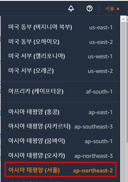 지역 설정을 해준다. 지역은 서울로 설정한다.