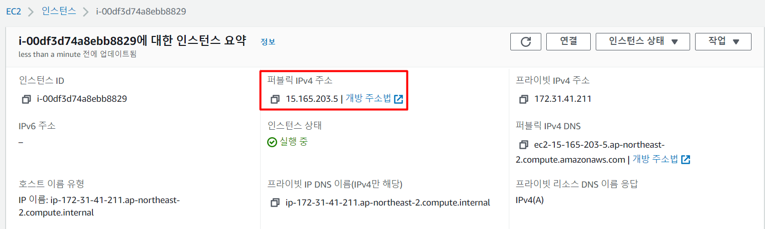 15.165.203.5로 다시 접속하면 잘 뜨는 것을 확인할 수 있다.
