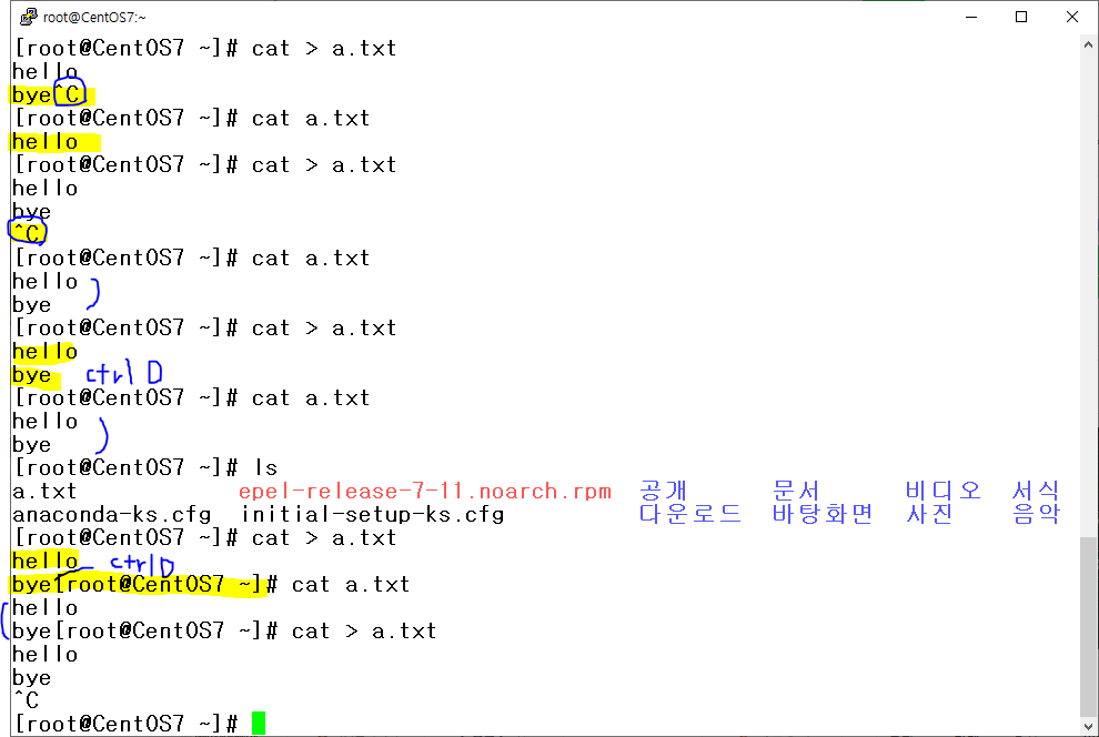# cat a.txt : a.txt로 입력받아 화면에 출력