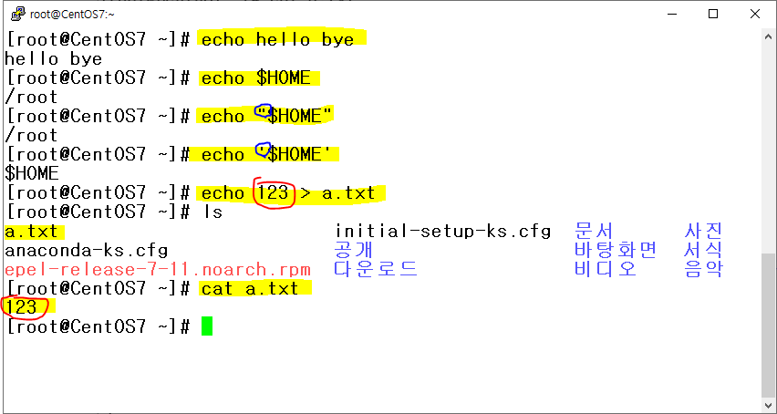 # echo $HOME : 변수 $HOME 에 있는 값 출력